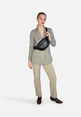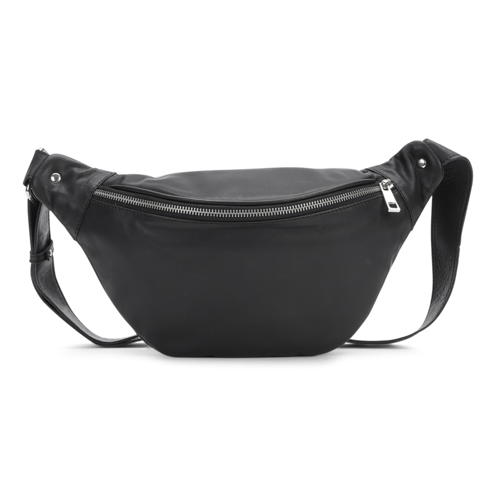 Sort bæltetaske i glat, blødt skind. Den har et moderne, minimalistisk look der vil klæde enhver stil.
