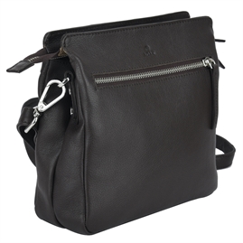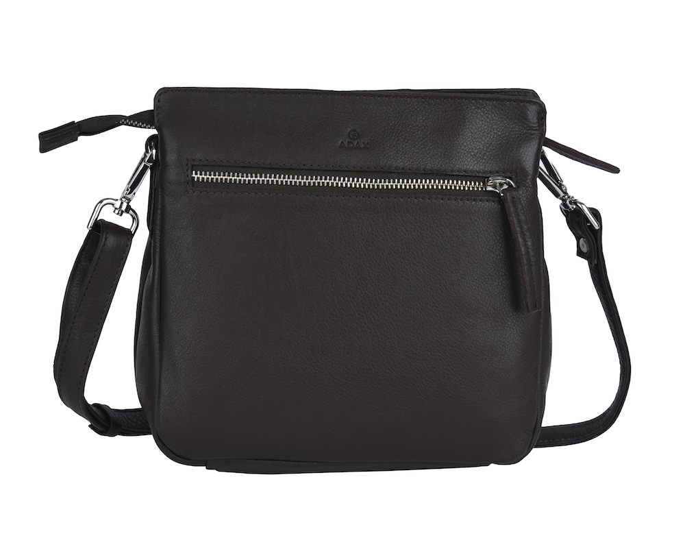Alfrida crossbody i blødt Bari læder fra Adax. En super skøn taske, som kan rummer det mest nødvendige du lige skal have med på farten. Indvendig består tasken af 2 rum som er adskilt af en tynd lynlåslomme. I foret i det bagerste rum findes der en lille lynlåslomme og i det forreste rum findes der en åben læderlomme. Tasken lukkes i toppen med en metal lynlås og har en lang aftagelig justerbar skulder rem, som gør at man helt selv kan bestemme hvordan man vil bære den. På front og bagside findes der yderlig en lille lynlåslomme. Plejes med Adax balsam eller Adax Protection spray