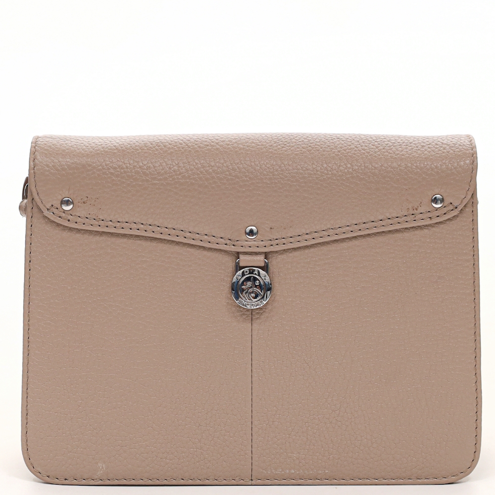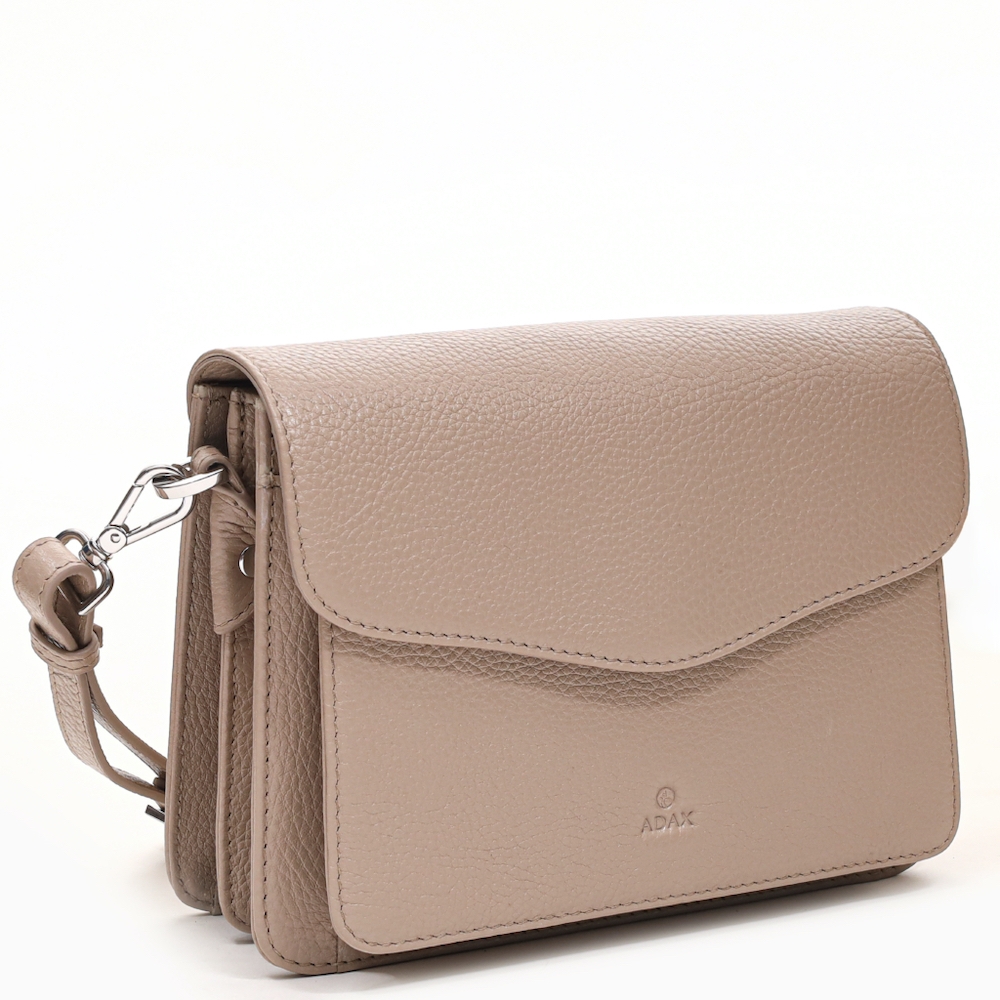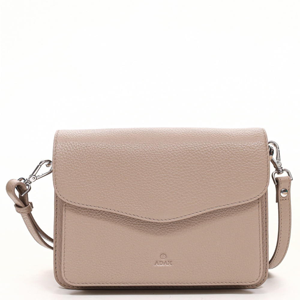 Skøn lille crossover i Desert kalveskind med flot struktur fra Adax. Tasken er klassisk i sit design, og er afstivet, så den holder faconen.