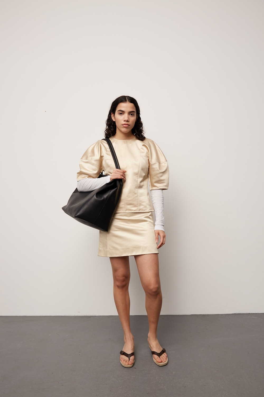En rummelig og blød skuldertaske med et elegant, afrundet design. Det store hovedrum giver god plads til hverdagens ting og har flere indvendige lommer, så du let kan holde orden. Shopperen kan bæres i de bløde hanke, der sidder godt over skulderen – eller med den medfølgende aftagelige og justerbare skulderrem, så du kan bruge den som skuldertaske eller crossbody alt efter behov.. Et enkelt og funktionelt valg til en aktiv hverdag.