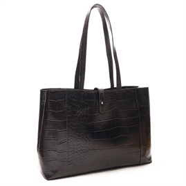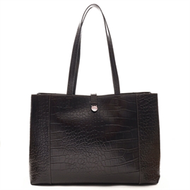 Elegant skuldertaske med struktureret overflade og en fast form. Den har et hovedrum med lynlås og indvendige lommer, der gør det nemt at organisere dine ting. Tasken er rummelig og der er plads til, at have en computer med sig, hvilket gør den ideel til arbejde og hverdagsbrug. De lange hanke gør den behagelig at bære over skulderen. Den lukkes med en diskret strop, hvilket giver et stilrent og tidløst udtryk.