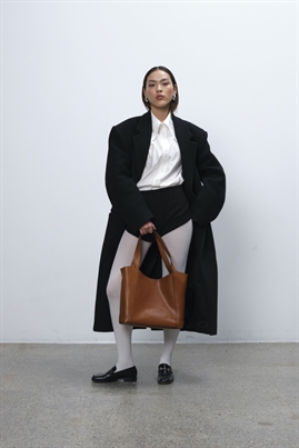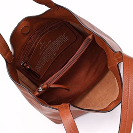 Shopperen har to rum delt af et smalt lynlåsrum. Yderligere en lynlåslomme og en lille åben læderlomme i det ene af de åbne rum. Der medfølger en tote bag og en garantifolder som kan bruges som kortholder.