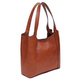 En enkel shopper med god plads. Tasken er i blødt skind og har 2 lange skulder-/bærehanke.