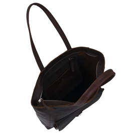 Robin shopper i Catania læder fra Adax. En rummelig og klassisk shopper med to lange bærehanke. Tasken har et stort rum, hvor der indvendigt er en stor lomme i canvas med plads til fx mobiltelefon samt en lynlåslomme til små praktiske ting. Tasken lukkes i toppen med lynlås. På både front og bagside finder der yderligere pratiske lommer. Tasken er ikke foret. Denne taske er fremstillet af ægte okselæder, hvilket gør den holdbar til både studie, arbejde og rejser.