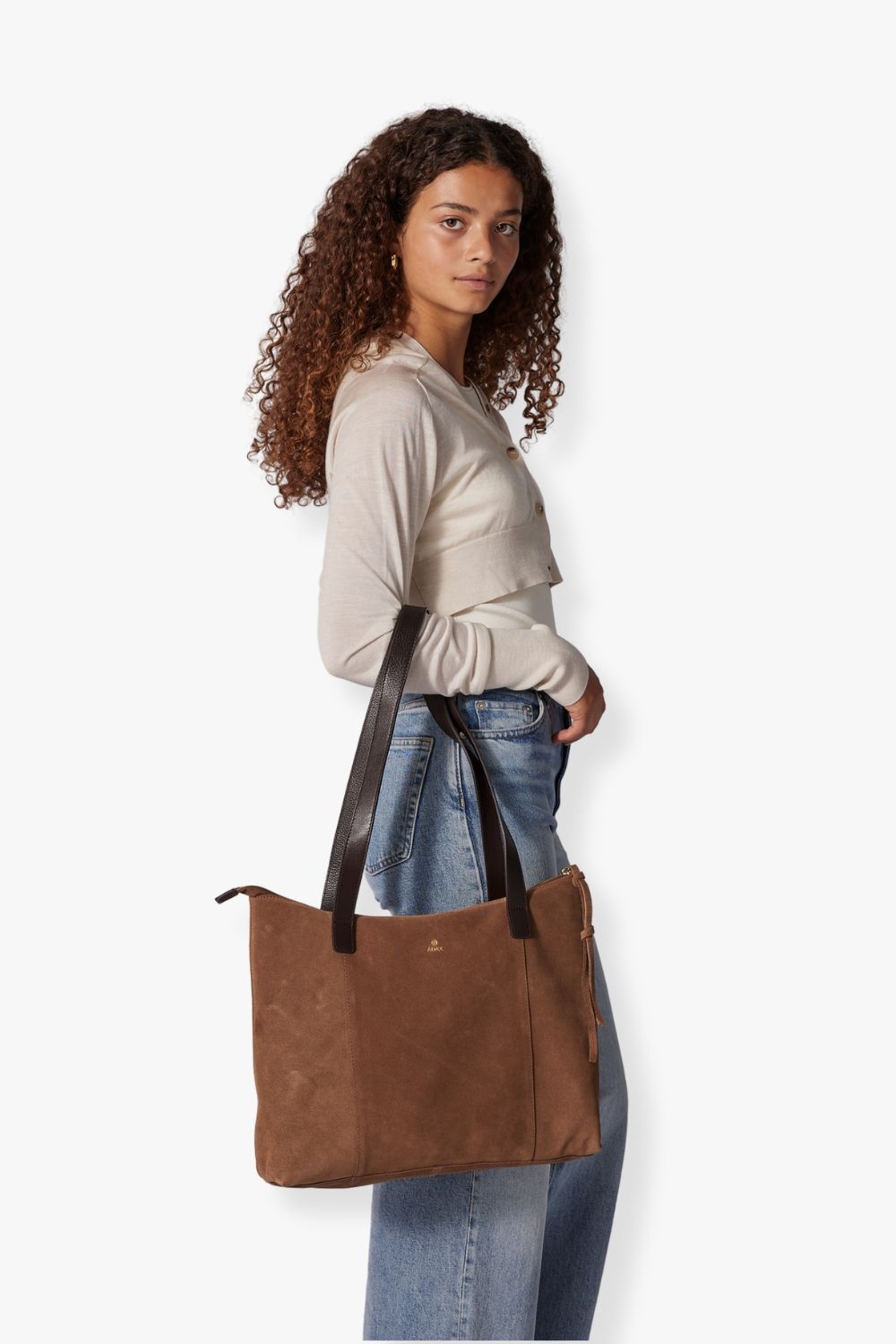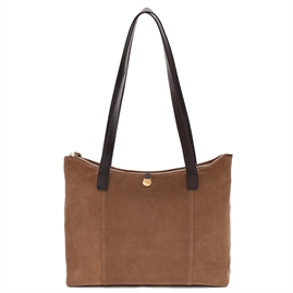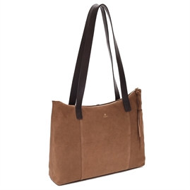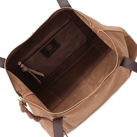 Rozzano Amelie Shopper fra Adax er den fineste taske. Tasken kan både bruges som arbejdstaske, et indkøbsnet eller til hverdagsbrug. Tasken er af flot bruntfarvet italiensk ruskind og har en masse fine guld detaljer.