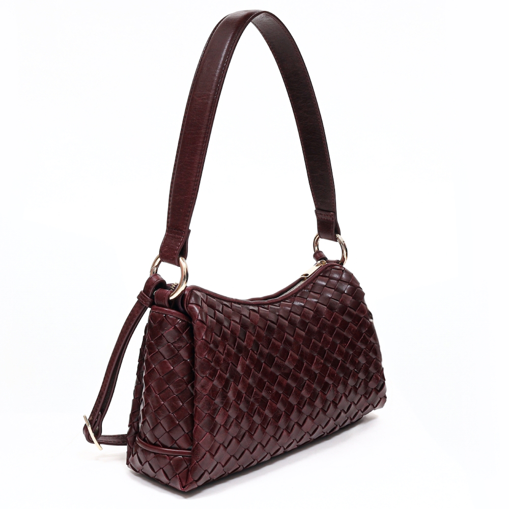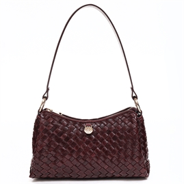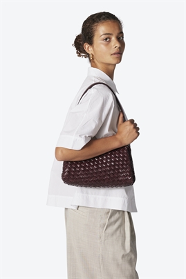 Lækker skuldertaske i mørkerødt flettet skind skind fra Adax