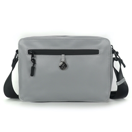 Udvendigt har tasken 2 dekorative lommer på forsiden, samt en lomme med lynlås på bagsiden.