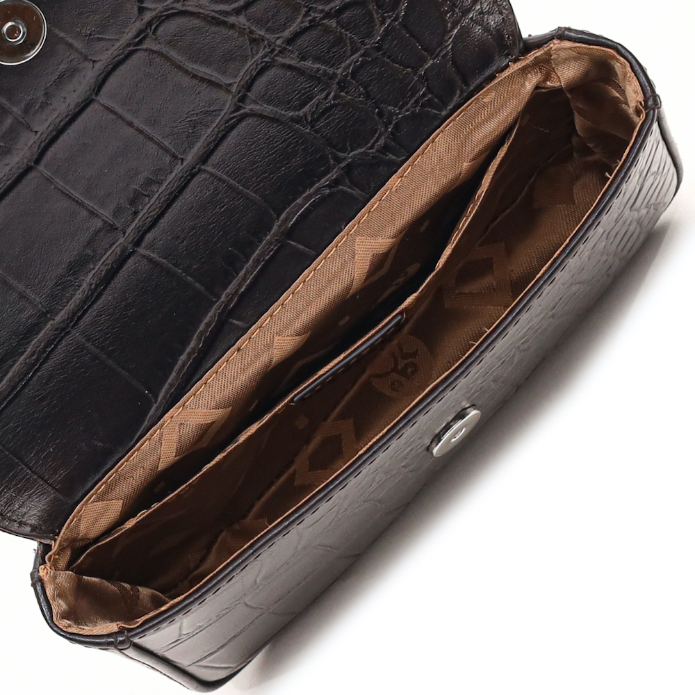 Adax Teramo Elna er en lille og smart bæltetaske i et smukt krokodillepræget skind . Den bæres om livet som en traditionel bæltetaske og er fremstillet i kvalitetsskind, hvilket giver et elegant og tidløst udtryk.