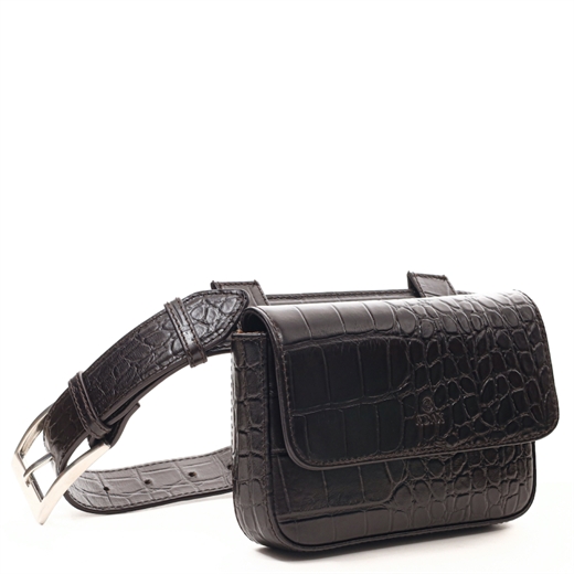 En smart detalje ved bæltetasken er, at tasken kan tages af remmen og bruges som pung eller clutch, alt efter anledning. Den åbnes med en klap og magnetknap, og indvendigt finder du ét hovedrum samt en praktisk stiklomme til småting.