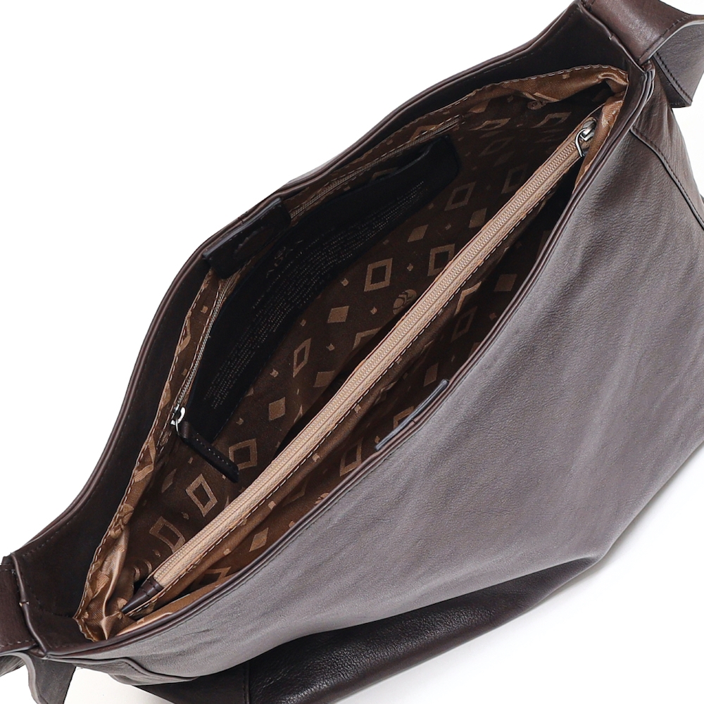 Elegant skuldertaske i blødt læder med et minimalistisk design. Tasken har et rummeligt hovedrum med lynlås og flere indvendige lommer, hvilket gør den praktisk til hverdagsbrug. Den justerbare skulderrem sikrer fleksibilitet og komfort. Lukkes med magnetlås.
