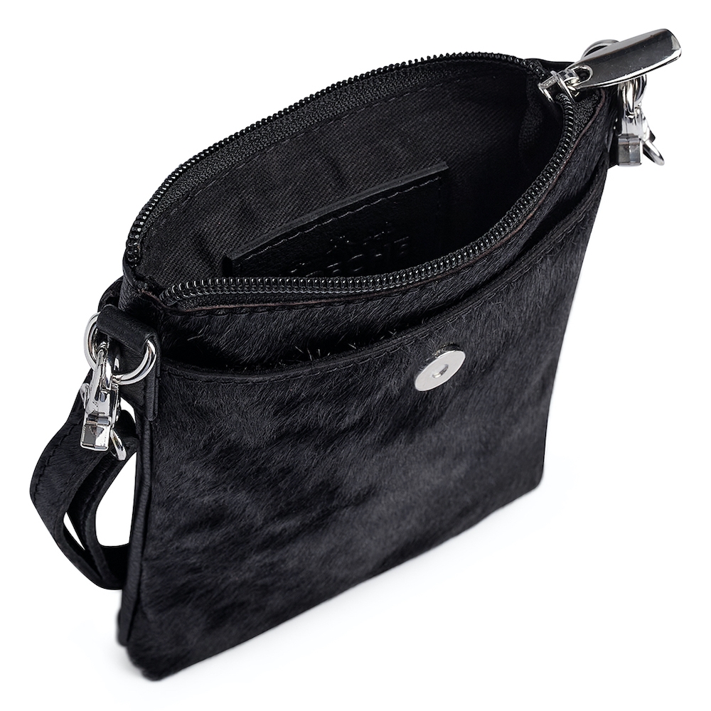 Denne mobiltaske er den perfekte kombination af funktionalitet og stil, designet til at holde din telefon sikkert opbevaret, samtidig med at den tilføjer et unikt og trendy touch til dit outfit. Tasken er lavet af 100% cow leather (hair on), hvilket giver den et eksklusivt look med en naturlig struktur, der skiller sig ud.