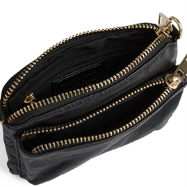 Tasken har to separate rum, begge med lynlåslukning – ét på fronten og ét øverst – så du nemt kan organisere dine ejendele og holde styr på det vigtigste. Det gør tasken ideel til mobil, kort, nøgler og lidt ekstra.