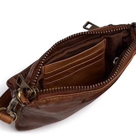Tasken har to separate rum, begge med lynlåslukning – ét på fronten og ét øverst – så du nemt kan organisere dine ejendele og holde styr på det vigtigste. Det gør tasken ideel til mobil, kort, nøgler og lidt ekstra.