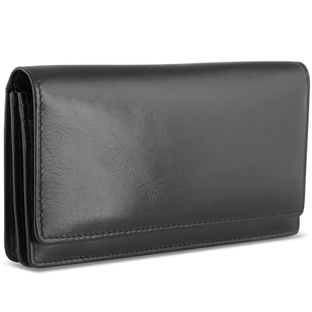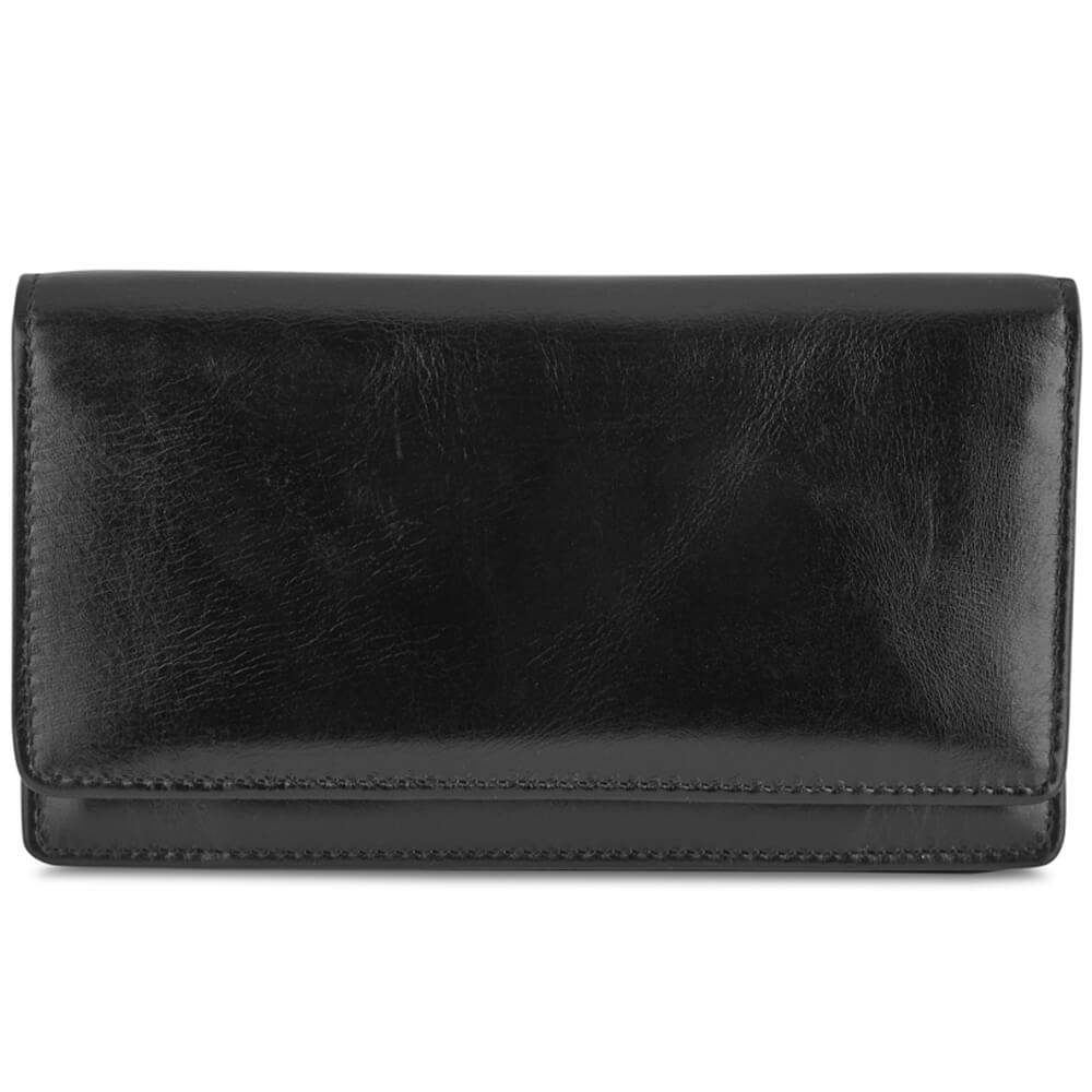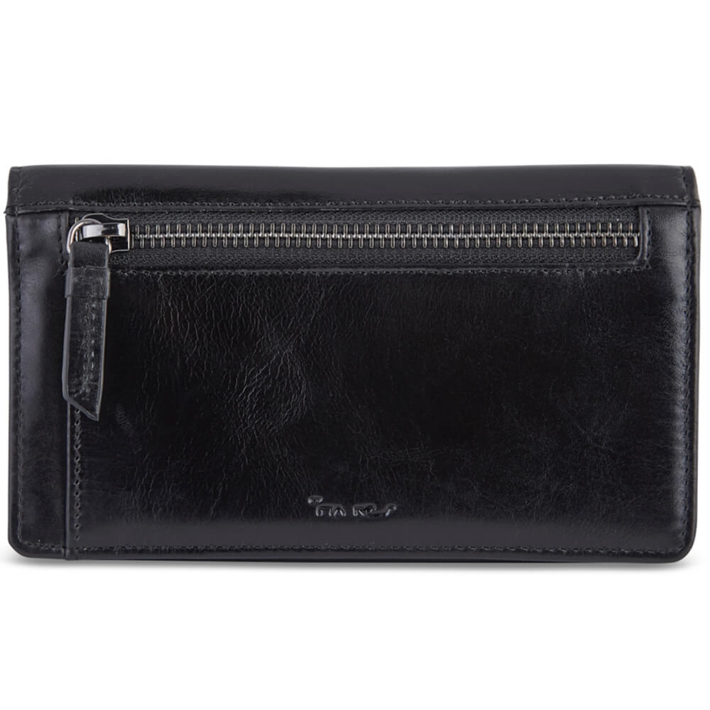 Rummelig pung med overslag i sort skind fra Pia Ries.