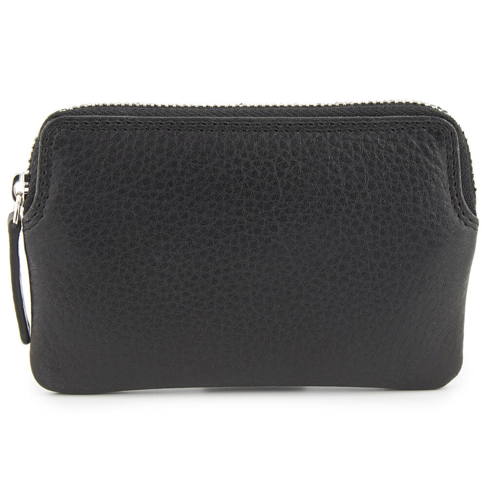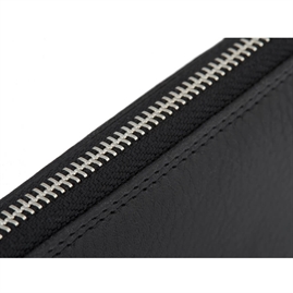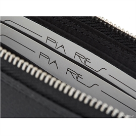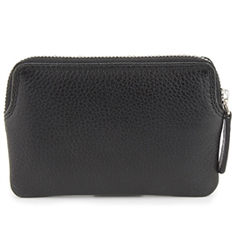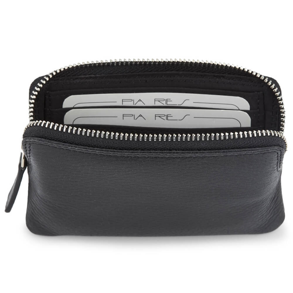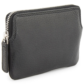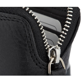 Lille pung med sølvfarvet lynlås fremstillet i blødt kalveskind. Pungen har indvendigt 6 stiklommer til kort og i midten plads til eventuelle kontanter.