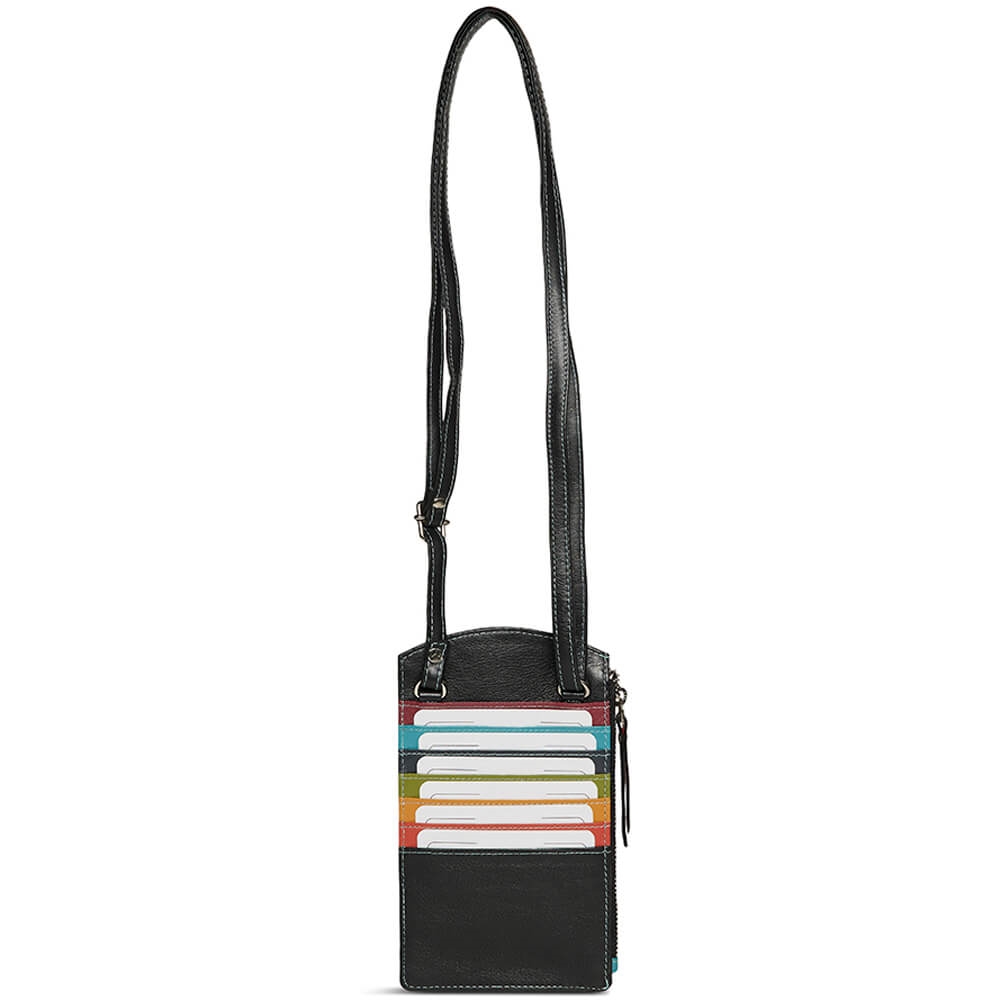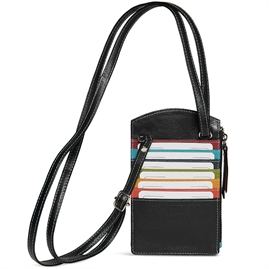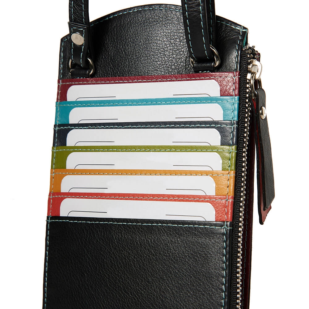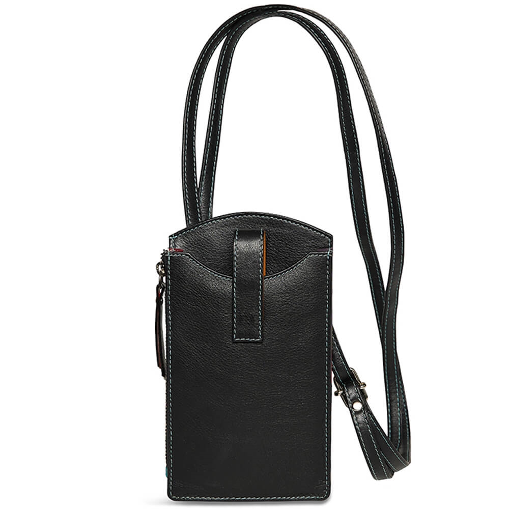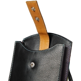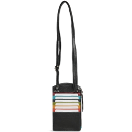 Praktisk og smart mobiltaske fra Pia Ries i en flot kombination af sort og multifarvet kalveskind.