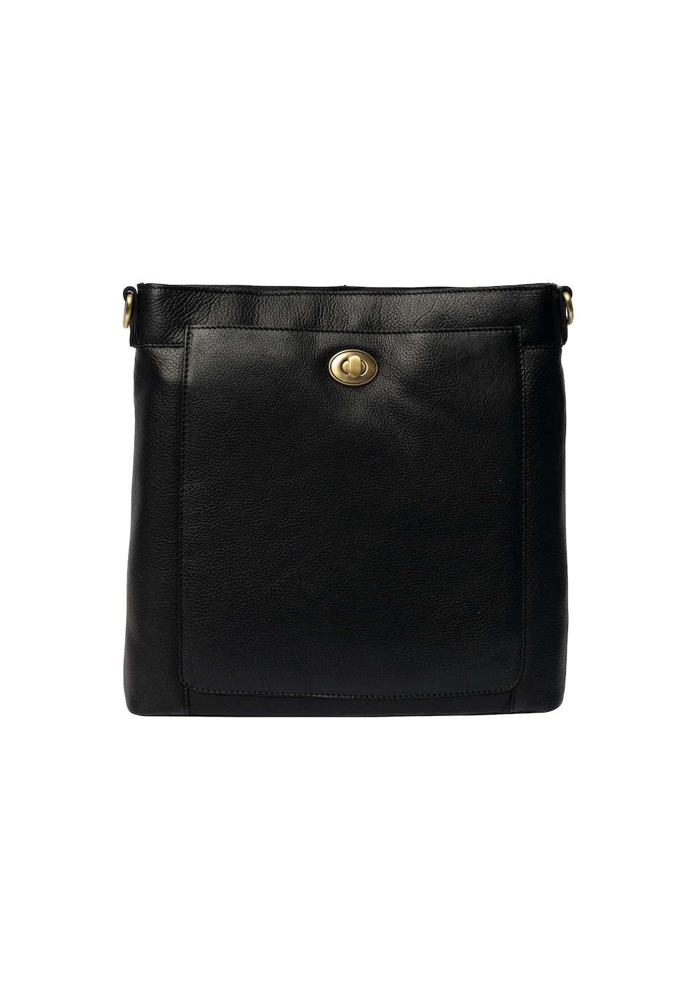 Moa Big er en stilfuld crossover-taske med et elegant og moderne design. Den har en charmerende frontdetalje med et guldspænde, der tilføjer et strejf af elegance. Det rummelige hovedrum tilbyder masser af plads til alle dine hverdagsartikler, hvilket gør den til den perfekte ledsager på farten.