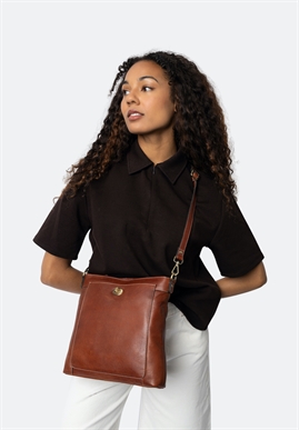 Moa Big er en stilfuld crossover-taske med et elegant og moderne design. Den har en charmerende frontdetalje med et guldspænde, der tilføjer et strejf af elegance. Det rummelige hovedrum tilbyder masser af plads til alle dine hverdagsartikler, hvilket gør den til den perfekte ledsager på farten.