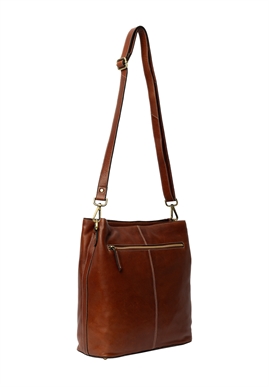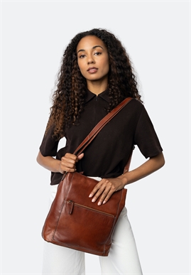 En super fin crossover taske i cognacfarvet skind fra ReDesigned.