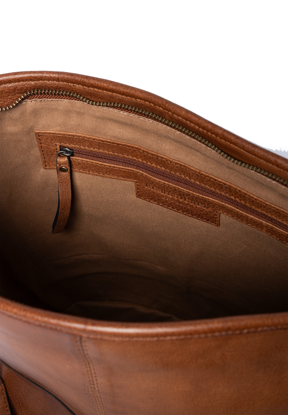 Denne taske er lavet i Urban Leather Quality - et malet okselæder, der farves inden overfladen er færdigbehandlet. Denne proces bevarer læderets naturlige tekstur og efterlader hver taske med unikke egenskaber, hvor ikke to er ens. Efter farvestoffet påføres en let voks, hvilket skaber en glat og blød finish.