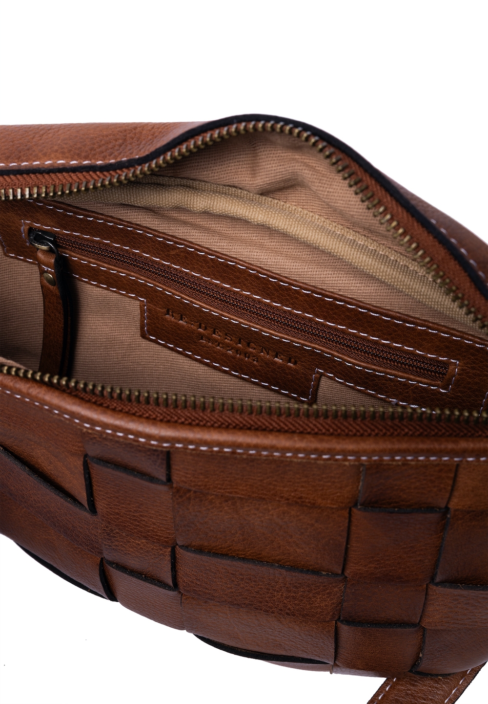Noor bæltetaske fra Re:Designed er det perfekte tilbehør til både dagligdags brug og særlige lejligheder. Tasken er designet i et smukt flettet skind, der giver den et unikt og stilfuldt udseende. Den justerbare rem sørger for, at du kan bære tasken komfortabelt og tilpasse den til dine behov, uanset om du foretrækker at bære den om livet eller tværs over kroppen.