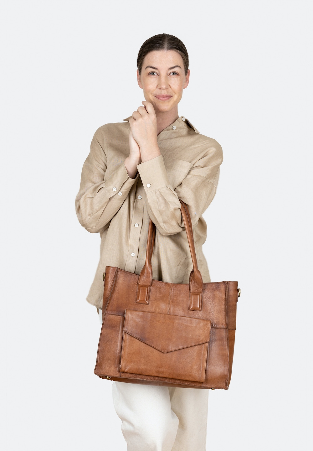 Otilia Urban er en rummelig shopper taske fra Re: Designed - perfekt til hverdagsbrug eller en shoppingtur. Otilia er en tidløs shopper i en lækker blød vintage-look læder. Tasken har et stort hovedrum med lynlåslukning med plads til en 15" bærbar, samt en lynlåslomme og 2 åbne lommer indvendig. Den har også en lomme med klap og magnetisk trykknap. Den har 2 hanke samt en aftagelig regulerbar skulderrem.